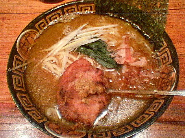 oosakiさん情報より面白い家系のラーメンがあると聞きつけ早速行ってきました。店内は半分おしゃれな感じで、厨房側が殺伐としているなんともアンバランスな感じ。ラーメンは「現代風ラーメン」を注文。家系のスープに魚介の風味を加えたもの。ちょっと家系のベーススープが薄く感じましたが、結構「ウマイ」不思議と吸い込まれるようなスープであっという間に飲み干してしまいました。