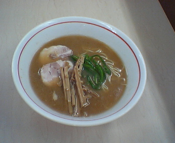 トッピングは、バラ肉のとろとろチャーシューとピーマン、たけのこ?後は白葱ですね。スープは逸品といった感じで、鰹の風味がしっかり出ていて美味しかったです。(長い営業時間で魚介の風味が落ちるのを必殺「追い鰹」で切り抜けるのはさすがですね)