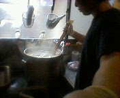 写真はスープ取りをして入るところです。徐々に気温も上がり汗だくになりました(-_-;)夏が・・・怖い。