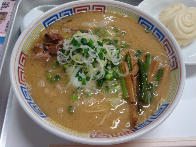 豚骨だけど、臭みはなし、まろやかなコクがあり、ほのかな甘み、ふんわり魚油で香りをたてて。具にはやわらかいチャーシューと温玉、葱、メンマとニンニクの芽の炒めもの。