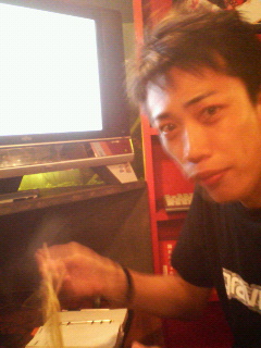 ずるずると赤川氏が食べております。
