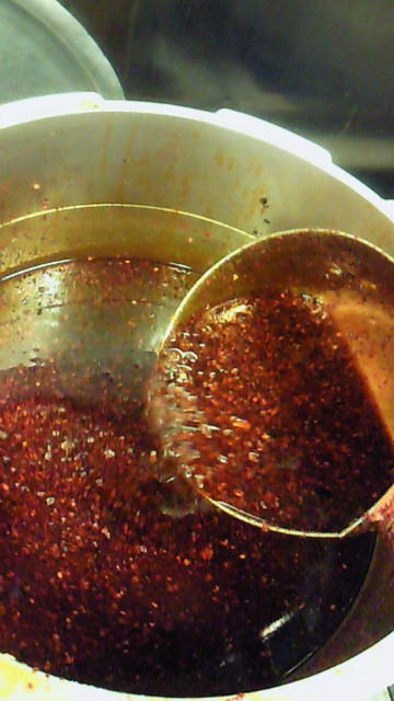 お盆後に、辛いラーメンの出荷があるので、早速仕込みです。思いのほか時間がかかった・・・・。辛〜ぃ。カラーイ。