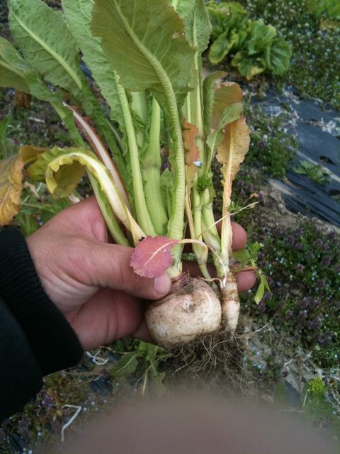 農家の人は包丁で野菜を狩ることもあるんですね!根っこからゴンゴンやっていきます。