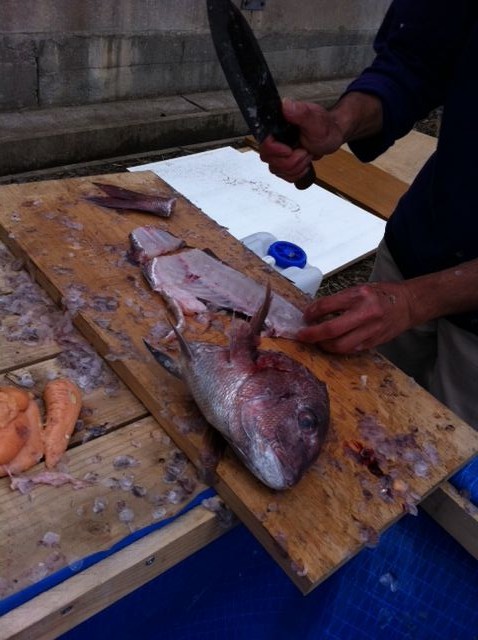 朝はひとみちゃんが大阪からくる時に買ってきてくれた「鯛8匹」を鯛めしにする準備から。